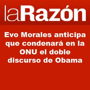 El presidente Evo Morales anticipó esta tarde que mañana, durante su discurso ante la Asamblea General de la Organización de Naciones Unidas (ONU), condenará el “doble discurso” que maneja el presidente de Estados Unidos, Barack Obama, para justificar las intervenciones territoriales.
