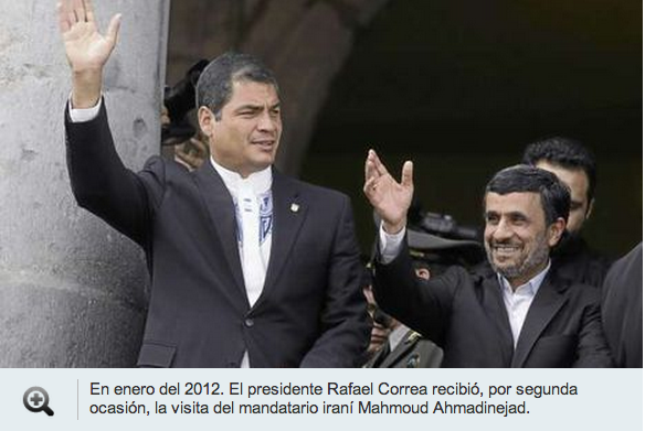 12 enero 20012 Visita de Mahmud Ahmadinejad a Quito. En la cita presidencial, que duró cinco horas, se concretaron varios acuerdos bilaterales. El presidente Rafael Correa expresó su respaldo a Irán frente a las agresiones externas. Febrero 2012 El presidente del Directorio del Banco Central, Pedro Delgado, lideró una misión ecuatoriana a Irán. En esa gira se trató de negociar la venta de Cofiec a un banco iraní y se concretaron otros acuerdos bilaterales.