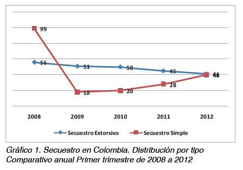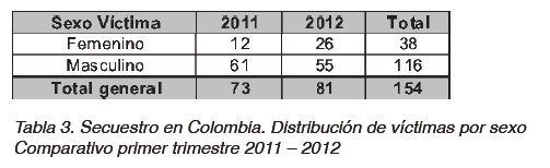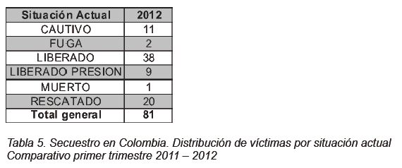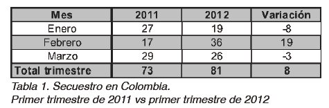 Balance del secuestro extorsivo en Colombia durante el primer trimestre de 2012