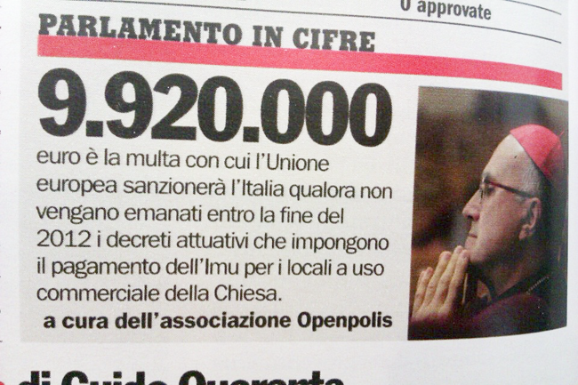 Il Consiglio di Stato ha bocciato il decreto del tesoro per l’applicazione dell’imu sugli enti non commerciali, dunque anche sulle proprietà della Chiesa. Nella sentenza si legge che “non è demandato al ministero di dare generale attuazione alla nuova disciplina dell’esenzione imu per gli immobili degli enti non commerciali”. Bocciatura già messa in conto dal governo che ieri – attraverso le parole del sottosegretario Polillo – si era già detto “disponibile a modificare il decreto, rispettando le indicazioni del Consiglio di Stato”.