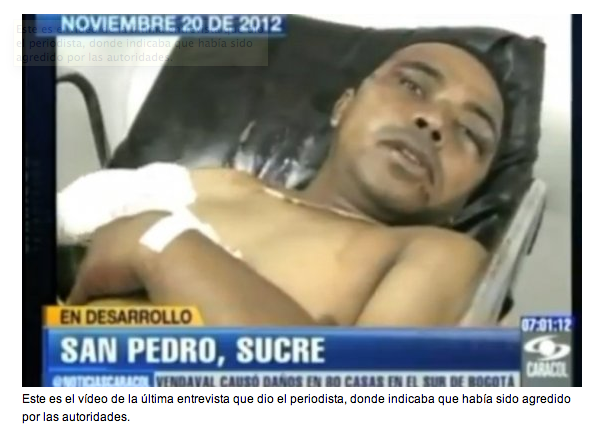 Il 20 novembre, il giornalista Guillermo Quiroz è stato aggredito a San Pedro, Sucre, mentre documentava una protesta contro una multinazionale del gas. (VEDI VIDEO)
