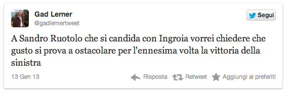 E’ chiaro che l’ex pm antimafia sta calibrando tutte le scelte in fatto di candidature, pescate con attenzione nel mondo dell’associazionismo impegnato di sinistra (Gabriella Stramaccioni di Libera o Flavio Lotti della Tavola della Pace) o tra gli scontenti del Movimento 5 stelle (Giovanni Favia) oppure tra casi noti della cronaca (Ilaria Cucchi e il fratello di Elisa Claps, Gildo, candidato in Basilicata), nonché tra gli operai (Antonio Di Luca della Fiom di Pomigliano). Il tutto alla ricerca anche di un effetto mediatico, oltre che di sostanza. Il caso Ruotolo, in quanto volto di una trasmissione di successo a sinistra come Servizio Pubblico, irradia una luce particolare sulla Campania dove sarà forte la concorrenza tra Pd-Sel e il polo Ingroia. Insomma, suona un campanello, anche se di allarme già annunciato.
