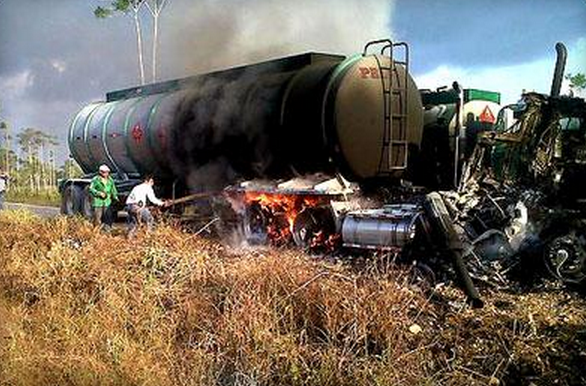 Dos tractomulas fueron quemadas por las Farc mientras recorrían el municipio de Puerto Asís, en el Putumayo, el pasado martes.