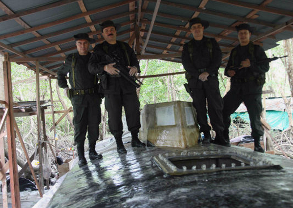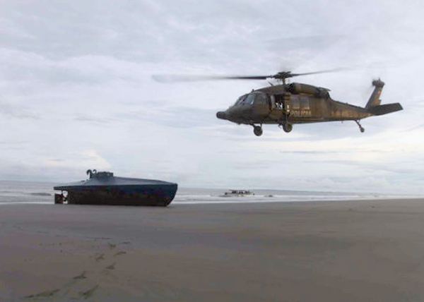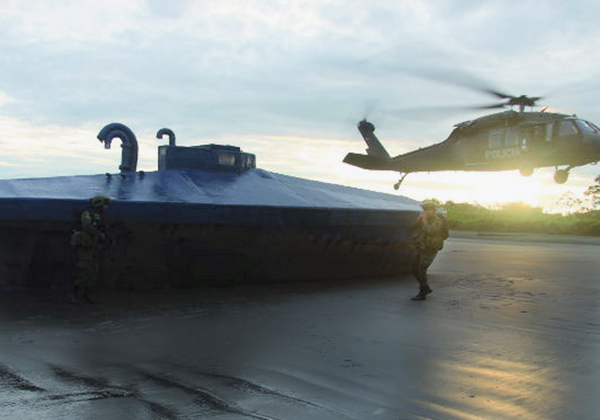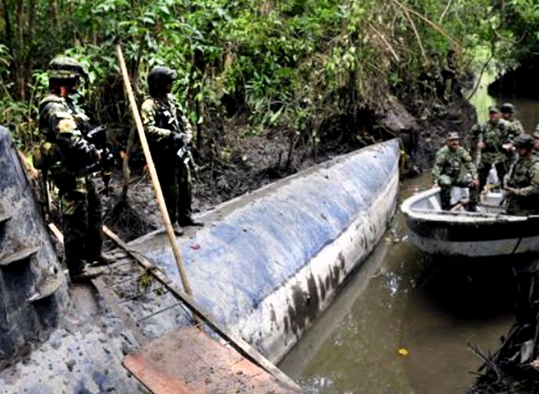 (…) Si naviga immersi nella vegetazione e dopo qualche minuto si materializza la “preda”: un sottomarino. Ma non di quelli artigianali, costruiti grazie a compiacenti ingeneri, che navigano a vista e a pelo d’acqua e trasportano nella loro pancia tonnellate di cocaina. Questo è enorme, 18metri, ricambio d’aria, gps, bagno, cuccette per sei persone, con uno scafo in kevlar e fibra di carbonio per immergersi fino a 20 metri di profondità e rendersi invisibile sia ai radar sia a una ricognizione aerea.