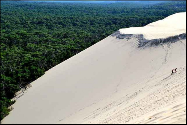 E’ lunga tre chilometri larga 500 metri ed alta 100 metri questo minaccioso muro di sabbia che uno si aspetterebbe di trovare nel Sahara ed invece è situato nella costa ovest della Francia. Per una stranezza della natura La Grande Duna di Pyla è cresciuta così tanto da diventare la più grande d’Europa inglobando con la sua forza case, strade e persino una foresta Si trova nella costa Atlantica, località Teste-de-Buch, a circa 60 chilometri da Bordeaux e nel corso dei secoli ha accumulato più di sessanta milioni di metri cubi di sabbia.
