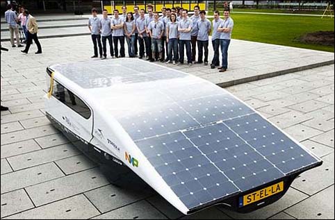 Si chiama Stella ed è la prima auto solare a quattro posti con un’autonomia di 600 chilometri. La sua superficie di pannelli solari è tale da produrre più energia di quella consumata. Non è un progetto: per dimostrare che la mobilità fotovoltaica è possibile, Stella otterrà la certificazione ufficiale per uso stradale. A ottobre, parteciperà nella classe Cruiser, alla prossima edizione del World Solar Challenge, la gara per auto solari che si terrà in Australia. E’ stata realizzata dall’università tecnologica olandese di Eindhoven, ha quattro posti, combina un design aerodinamico con materiali leggeri quali fibra di carbonio e alluminio, a bordo tecnologie hi-tech: un display touchscreen rende tutti i pulsanti e manopole superflui, il display è retroilluminato a luci Led e la guida è resa possibile grazie a un volante dinamico, capace di allargarsi se si va troppo veloci.