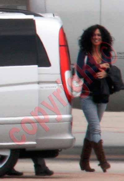 Raffaella Fico all'aeroporto Olbia Costa Smeralda sta per raggiungere Villa Certosa