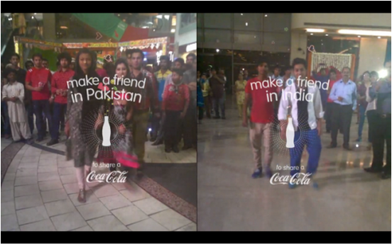 La campagna è rivolta a India e Pakistan (parlare di rivalità tra i due paesi e un eufemismo), e “protagoniste” sono due speciali distributori automatici: uno appunto in India e uno in Pakistan, dotati di un collegamento tra loro. Gli acquirenti possono avere una lattina gratis, a condizione però di interagire con qualcuno al distributore oltreconfine e svolgere assieme delle semplici e divertenti attività, come disegnare un simbolo di pace, cantare una canzone o ballare.