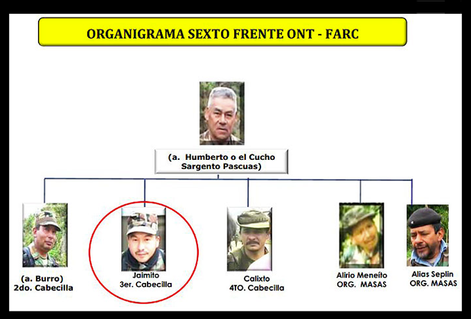 El ministro Pinzón reveló desde Cali que ‘el Burro’ había asumido la dirección del Frente cuando ‘Pascuas’ se trasladó a La Habana, Cuba, con motivo de los diálogos de paz que se adelantan con ese grupo guerrillero. De acuerdo con información de inteligencia, en ese momento también fue designado como segundo cabecilla de esa estructura Arley Medina Prado, alias Jaimito.