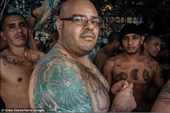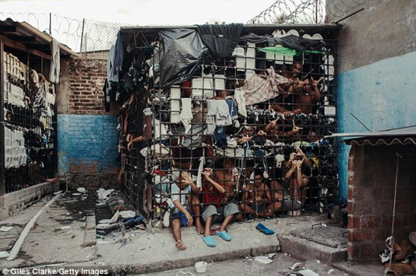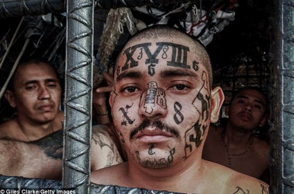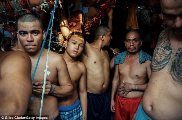 In ognuna di queste “celle”, costruite inizialmente per ospitare prigionieri per 72 ore, sono rinchiuse fino a 30 persone. I detenuti hanno tatuati i simboli dell’appartenenza a una delle due bande, e sono costretti a condividere spazi molto angusti con i componenti della gang rivale, in condizioni igieniche scarsissime.