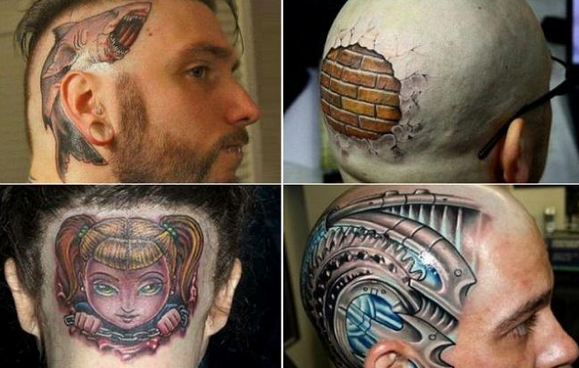 Teste aperte, angeli che spuntano da in mezzo ai capelli, squali sopra le orecchie, personaggi dei videogiochi sulle tempie: ecco un piccolo ma significativo assaggio di tatuaggi-horror – In Gran Bretagna una persona su cinque ha almeno un tatoo, ma alcuni datori di lavoro li hanno vietati…Dal “Daily Mail”