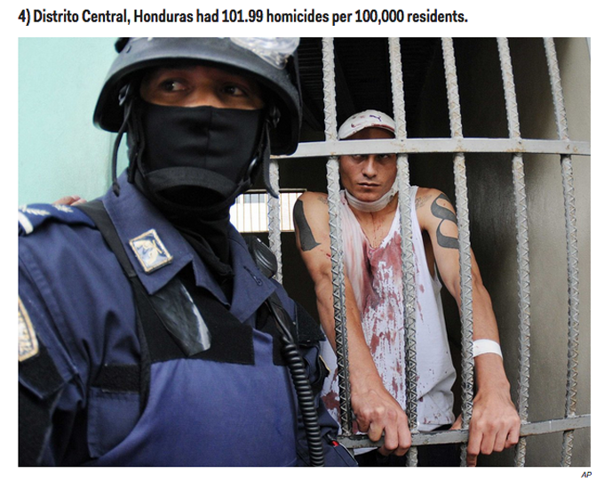 Il tasso di omicidi più alto di tutti è a San Pedro Sula, in Honduras, con 169 omicidi ogni 100.000 persone, secondo uno studio pubblicato all’inizio di quest’anno da parte del Consiglio dei cittadini del Messico per la pubblica sicurezza e la giustizia penale.