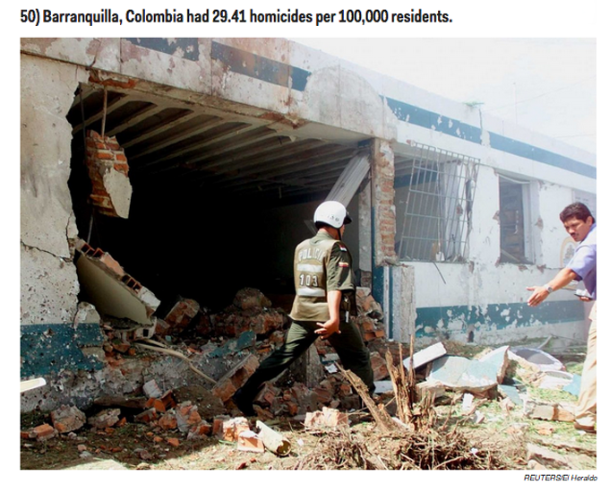 Infine Barranquilla al sesto posto in Colombia e al 50esimo (ed ultimo posto) nella stesura della classifica mondiale (AZ)