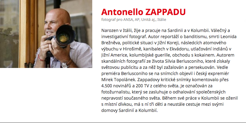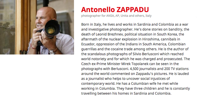 ITALIANO – Antonello Zappadu vive e lavora in Sardegna (Italia). Inizia l’attività di fotogiornalista da giovanissimo seguendo le orme del padre Mario, cronista della Rai-Tv. Lavora e sviluppa alcuni reportage sul fenomeno del banditismo sardo e si fa conoscere subito con alcune importanti esclusive. Lavora è collabora con agenzie di stampa nazionali ed internazionali.