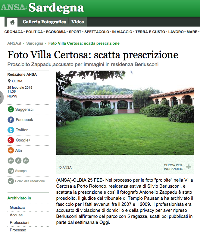 Gli scatti all’epoca furono pubblicati dal quotidiano spagnolo ‘El Paìs’ e Zappadu in seguito vinse la causa legale che gli aveva intentato Berlusconi per violazione di domicilio.